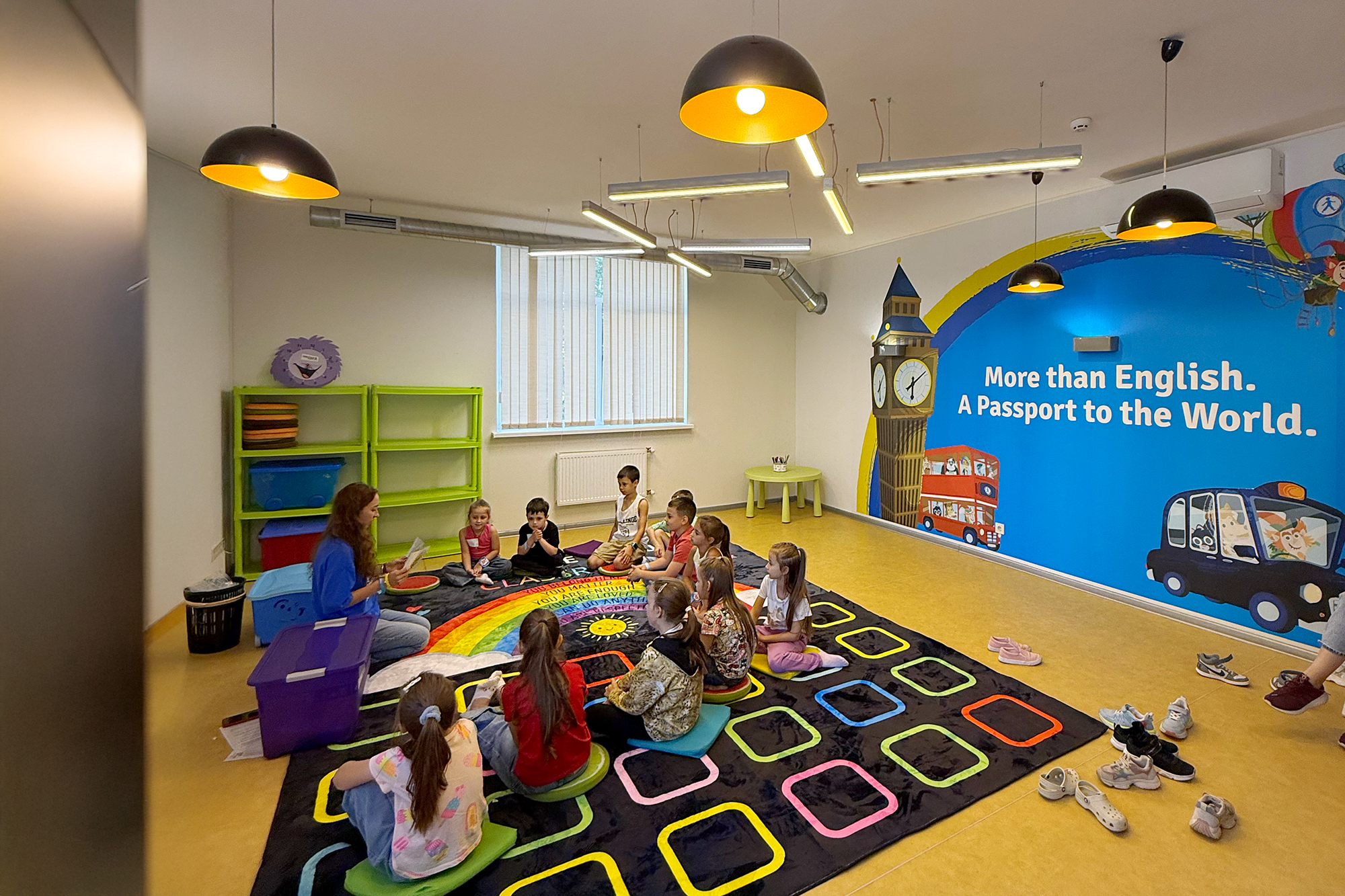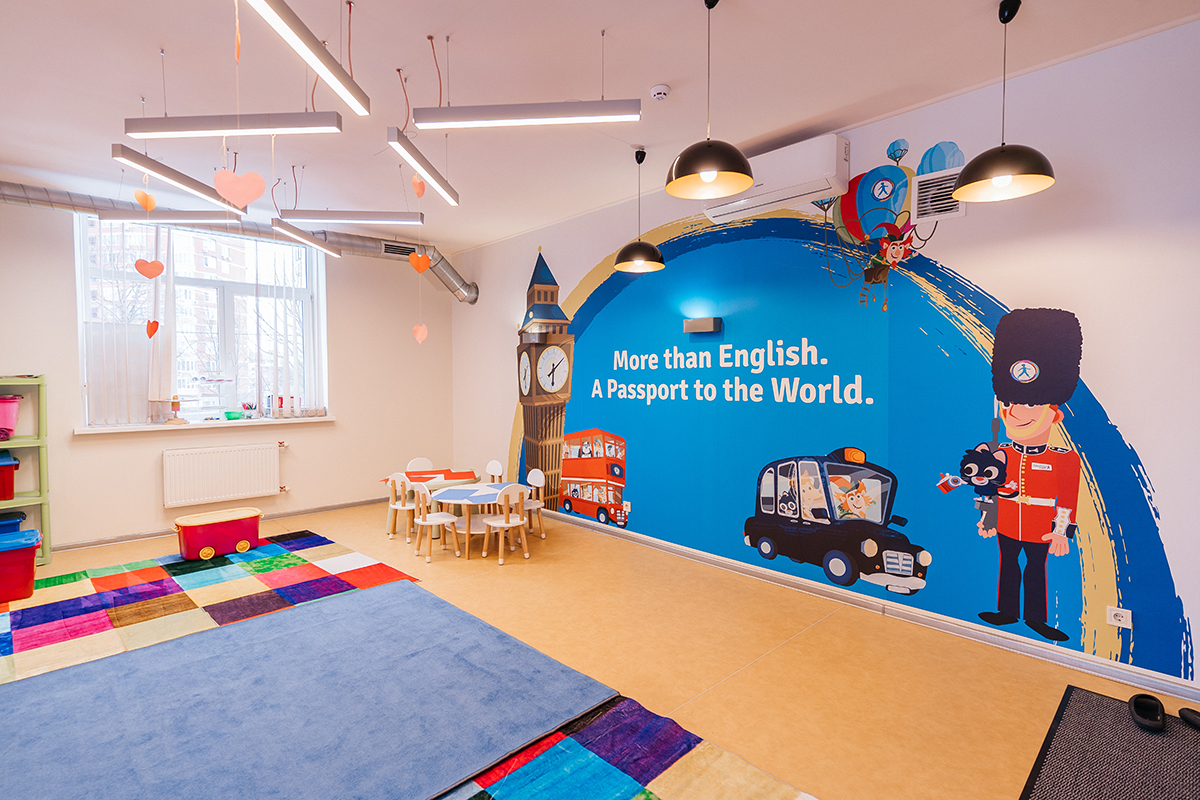 Уроки проходять у комфортній атмосфері без стресу: без парт, оцінок і тиску. Основний інструмент навчання — гра, що робить процес природним і легким. Діти швидко починають говорити англійською, спілкуватися між собою та виражати емоції іноземною мовою. Для дорослих використовується аналогічний підхід, який дозволяє подолати страх говоріння та почати впевнено комунікувати вже через місяць.